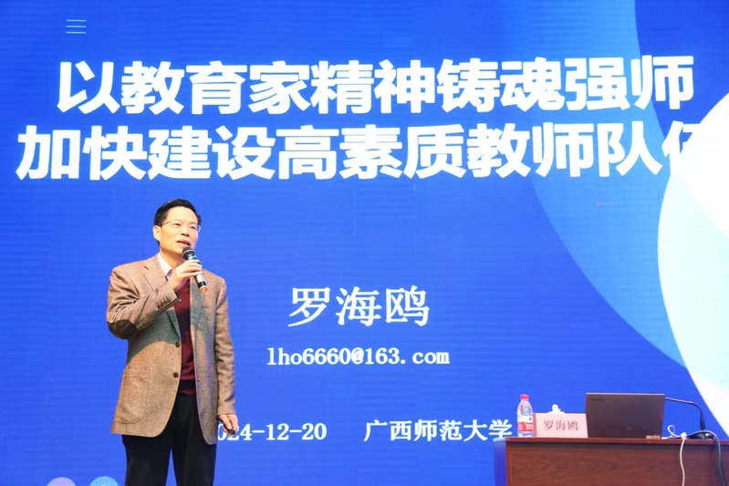 罗海鸥从“何谓教育家”引出问题,从叶企孙、梅贻琦等大先生的事迹,结合中外著名教育家和学者的见解,深入分析教育家精神的理论与现实意义,深刻阐释教育家精神的核心要义;同时寄语广大教师要以教育家精神铸魂强师,注重主体自修、激发内生动力,做好“定、静、安、虑、得”五个功夫,努力成为经师与人师、言传与身教相统一的大先生。