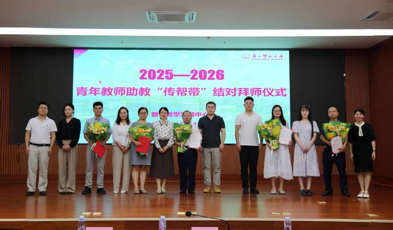 会上,黄晓娟为2025~2026学年青年教师助教指导教师颁发了“传帮带”聘书,并举行了青年教师助教和指导教师“传帮带”结对拜师仪式。